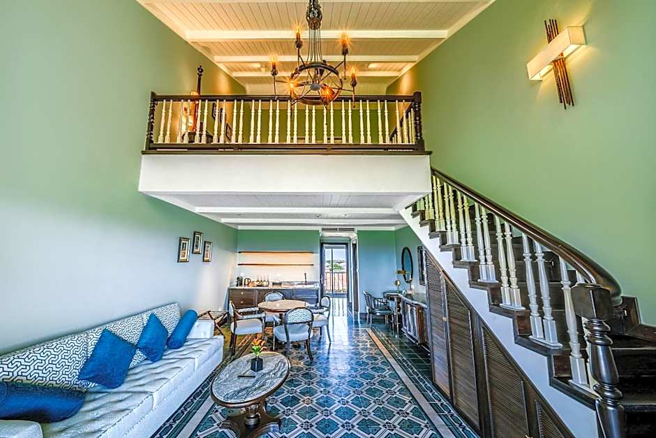 Located on the upper floor, the junior suite balcony guestrooms feature a large balcony overlooking the pool, gardens and community house. Period furnishings, very dark brown/almost black hard wooden flooring gives elegance and depth, complimenting white walls and cool linens. Large bathroom with a chic vintage-style, free standing bathtub. A pair can be balcony connected, providing ideal vacation for a family or a group of close friends. Extra bed is not available.