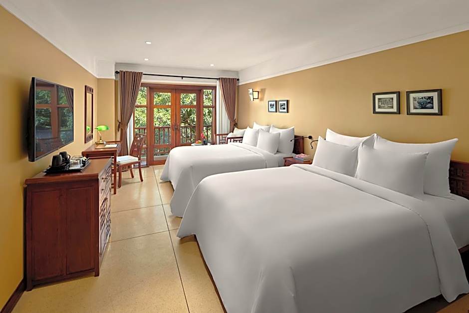 Located on the first to fifth floors inclusive, the Executive Suites feature a large 10m2 balcony overlooking the pool and rice fields. Period furnishings, very dark brown/almost black hard wooden flooring gives elegance and depth, complimenting white walls and cool linens. Large bathroom with a chic vintage-style, free standing bathtub. Extra bed is not available.